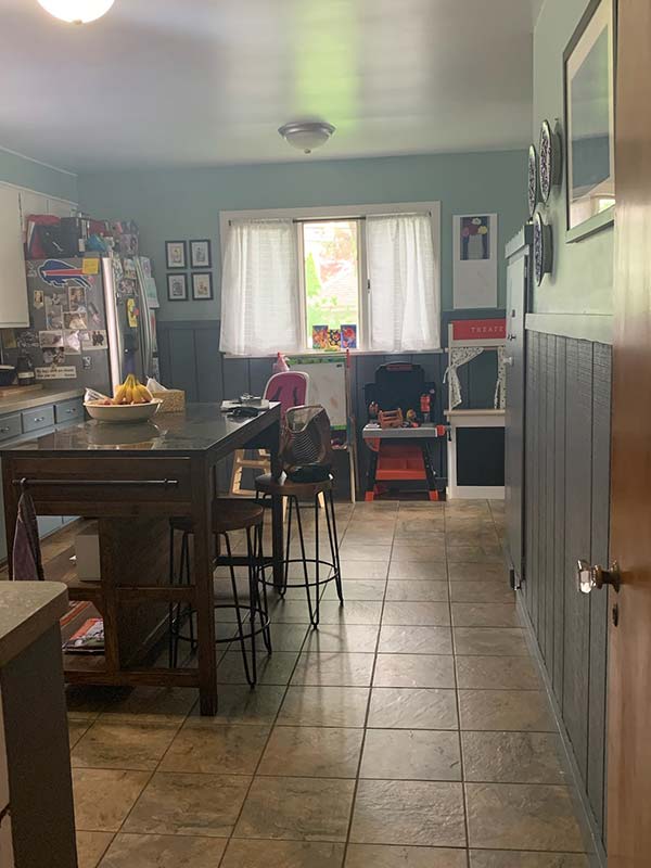 Create an updated, family friendly eat-in kitchen with access for future deck off the back of the house.